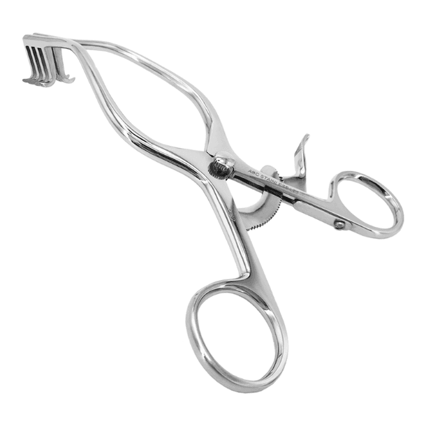 O Afastador Anderson-Adson Curvo ABC retrai incisões de tamanho médio, protegendo as bordas. Ele se usa em cirurgias neurológicas e de coluna vertebral. O instrumento tem duas hastes, cada uma com quatro dentes curvos e rombos. Esses dentes facilitam o acesso a tecidos profundos. As alças ergonômicas melhoram o conforto. O sistema de cremalheira garante auto retenção e reduz a fadiga do usuário. O acabamento acetinado diminui o brilho e oferece alta durabilidade ao instrumento.
