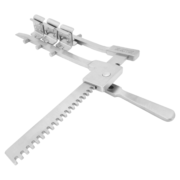 “O Afastador Ankeney ABC é um instrumento cirúrgico versátil que é frequentemente usado durante cirurgias de trauma e procedimentos cardiovasculares. Protege e retrai costelas adjacentes para melhor acesso aos órgãos internos durante a cirurgia. Inclui especialmente lâminas anguladas para se adaptarem ao formato das nervuras para uma retração eficiente. Cada haste possui duas lâminas móveis para atender a diferentes necessidades anatômicas.O instrumento possui design ergonômico e leve para garantir um manuseio confortável. Além disso, vem com trava de parafuso para diminuir o cansaço do usuário. Fabricado em Aço Inoxidável Cirúrgico Especial, com fino acabamento acetinado que reduz o brilho, garantindo instrumentos cirúrgicos da mais alta qualidade.”