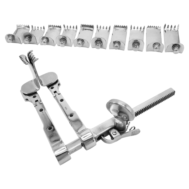 O Afastador Caspar Cervical Transversal ABC é um instrumento cirúrgico especializado comumente usado para retrair incisões menores e tecidos resistentes. Comumente usado durante procedimentos ortopédicos e neurocirúrgicos. Protege e retrai órgãos, bainhas, bem como tecidos e pele para melhor acesso. Inclui especialmente uma lâmina lateral com pontas semi-afiadas e uma lâmina Caspar alongada. Além disso, as lâminas são removíveis permitindo um ótimo uso do instrumento. As pontas semi-afiadas garantem uma aderência segura aos tecidos, evitando escorregões. Possui hastes articuladas para melhor acesso ao local da incisão e bordas lisas que evitam danos inadvertidos aos tecidos moles, presença de trava por parafuso que diminui a fadiga do usuário durante procedimentos longos.Fabricado em Aço Inoxidável Cirúrgico Especial, com fino acabamento acetinado que reduz o brilho, garantindo instrumentos cirúrgicos da mais alta qualidade em suas salas cirúrgicas além de contar com design leve e ergonômico para manuseio confortável.