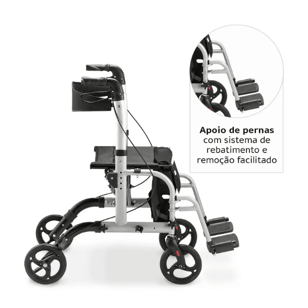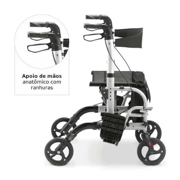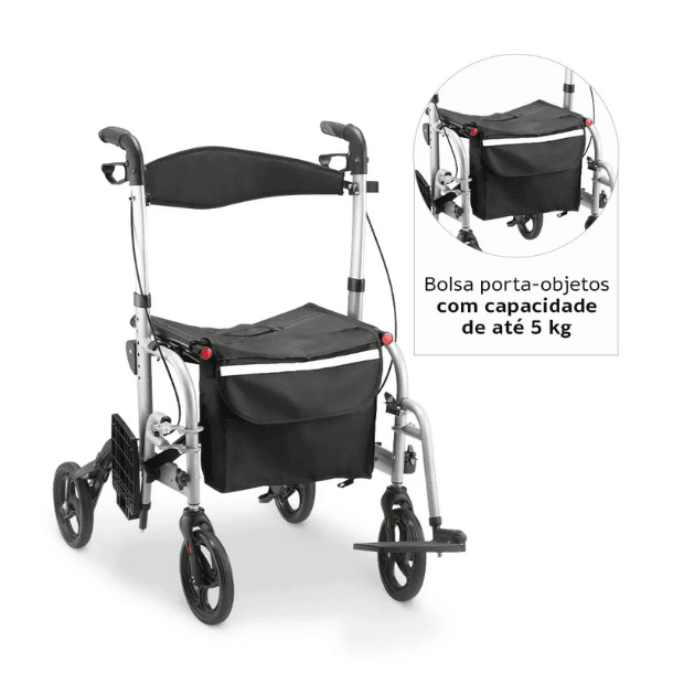 Pode ser usado como andador e como cadeira de transporte;