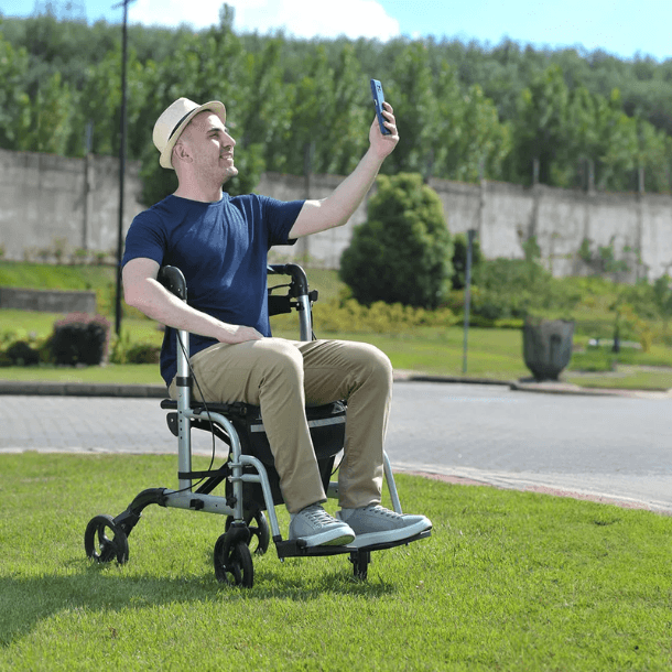 Dois em um: andador e cadeira de transporte