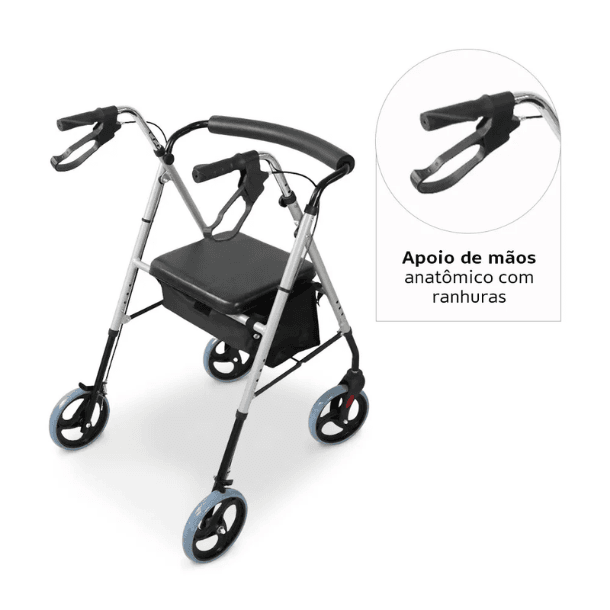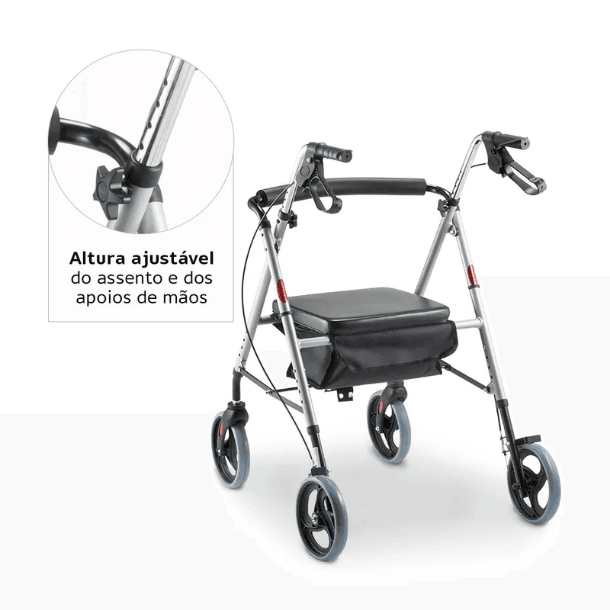 Andador de Alumínio Dobrável 4 Rodas com Assento D12 Dellamed