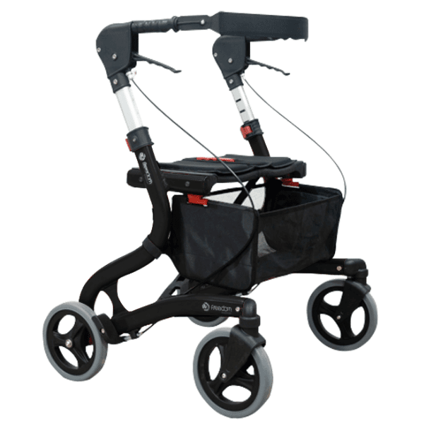 O Andador para Idosos Freedom Walker foi projetado para usuários que possuem mobilidade reduzida, com passadas mais curtas. Portanto, seus apoios de mão e manoplas de freio são mais próximas ao centro de gravidade do corpo. Dessa forma, o equipamento se torna mais seguro e prático.