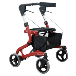 Dispõe de 4 rodas, sendo as 2 dianteiras com garfos giratórios. Maiores do que as rodas de andadores convencionais, proporcionam maior estabilidade e leveza para o condutor durante os deslocamentos.