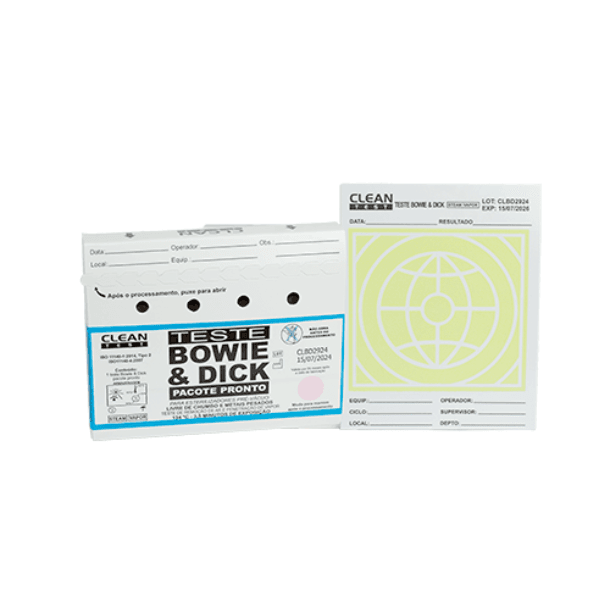 O Bowie & Dick Tipo Pacote Pronto é um indicador químico tipo 2, conforme as normas ISO 11140-1:2014 e ISO 11140-4:2007. Ele monitora diariamente esterilizadores a vapor com bomba de vácuo.