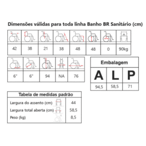 A Cadeira de Banho BR Sanitário suporta até 90 kg, oferecendo conforto e segurança. Seu design ergonômico e estrutura em alumínio garantem estabilidade e fácil manutenção.