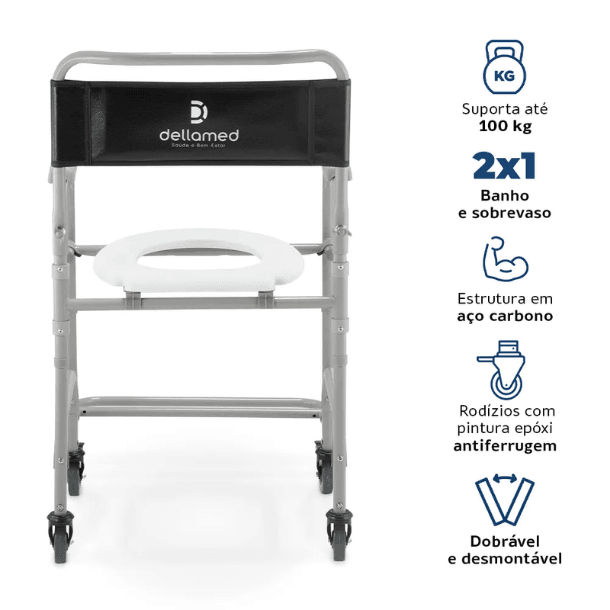 Cadeira de Banho Higiênica Dobrável até 100 Kg D30 Dellamed
