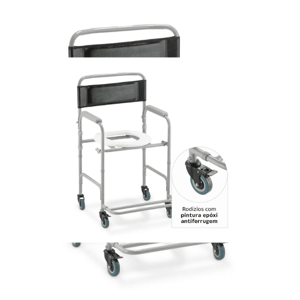 Equipada com 2 rodízios blindados com trava dupla, a D30 possibilita mobilidade total em espaços reduzidos, facilitando a locomoção do usuário. Sua estrutura reforçada e desmontável, aliada ao encosto em corino de alta resistência, garantem durabilidade e segurança durante o uso. Além disso, sua fácil montagem e pintura epóxi de alta resistência asseguram uma cadeira geriátrica de de excelente custo-benefício.