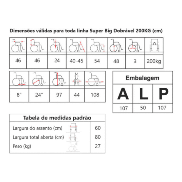 Cadeira de Rodas Super Big Dobrável 200Kg
