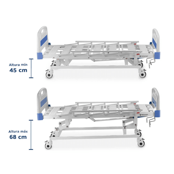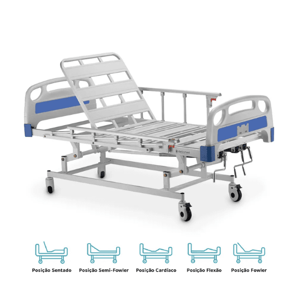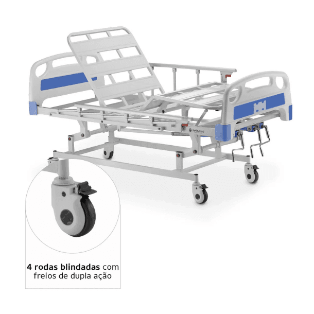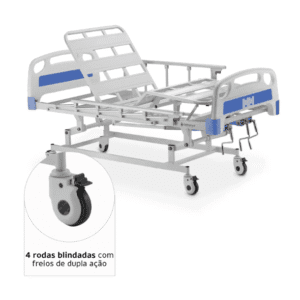 O sistema manual de três manivelas facilita o ajuste da cama, pois permite movimentações simples e silenciosas. Por isso, profissionais recomendam esta cama tanto para ambientes hospitalares quanto para cuidados domiciliares.