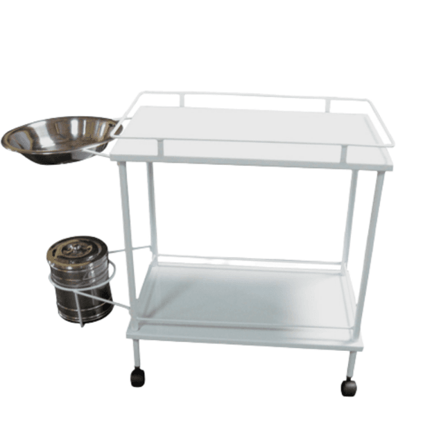 Carro Curativo Hospitalar Com Balde e Bacia Esmaltado