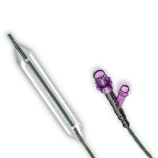 - Conexão Duplo Lúmen (Luer Lock): Projetado para introdução de fio guia metálico e insuflação segura do balão, oferecendo praticidade e segurança.