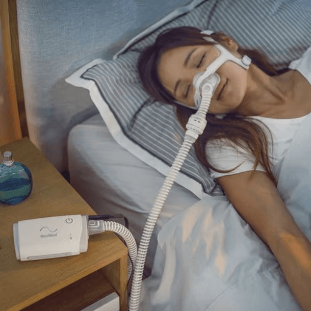 AirMini ResMed, para tornar a terapia mais natural e confortável, acompanhando sutilmente a respiração do usuário.