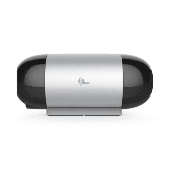 Graças a sua completa estrutura minimalista que pesa menos de 400g e a combinação de forma cilíndrica e futurística de aproximadamente 16cm. O design do CPAP BMC Mini M1 remete a simpática aparência de uma famosa caixinha de som portátil.