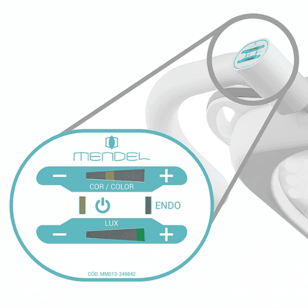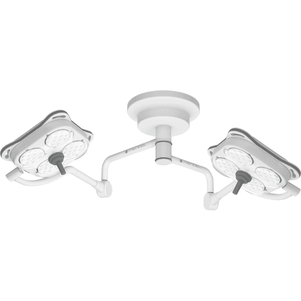 Foco cirúrgico de teto composto por duas cúpulas modelo 4LE, placa ótica dividida em quatro segmentos. Sistema “ENDO” que proporciona ao ambiente iluminação adequada para vídeo cirurgias, esta iluminação reduz a fadiga dos olhos durante os procedimentos endoscópicos e diminui o reflexo nos monitores LCD durante o procedimento e mantém o ambiente com iluminação suficiente para o trabalho. Sistema de controle de temperatura de cor, o cirurgião pode controlar a temperatura de cor do equipamento de acordo com a necessidade ou técnica a ser empregada. Campo operatório ajustável . Luz fria e de grande durabilidade. Posicionamento realizado por meio de manopla estéril ou alças laterais. Controle de intensidade de luz, temperatura de cor, liga e desliga, sistema endo, localizados no arco da cúpula. Iluminação: 160.000 lux Temperatura de cor: 3.000 – 6.500K Vida útil do LED: 226.000 horas