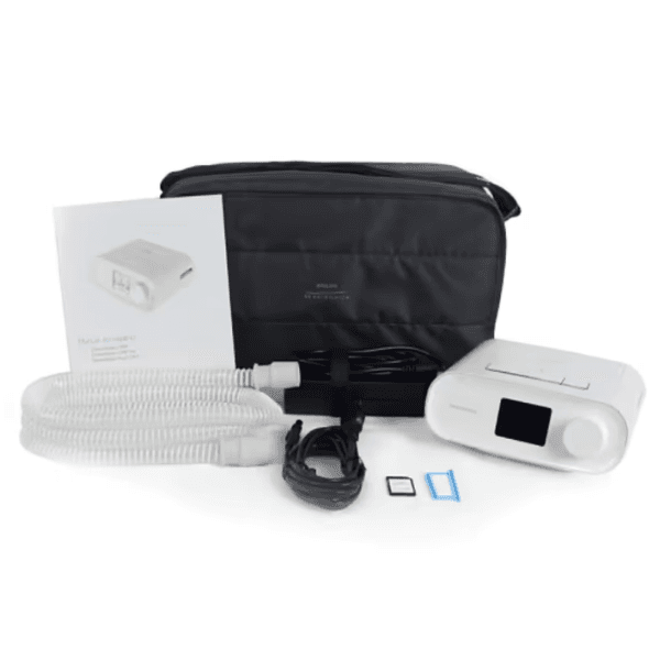 – Recursos avançados: SmartRamp, CPAP-check, Auto-Trial, EZ-Start, alertas, informações, teste de máscara, ligar e desligar sozinho e oximetria;