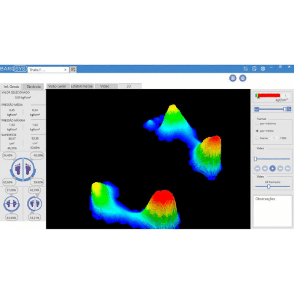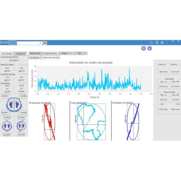 O BaroSys é um software simples, fácil de usar e completo: faz exames estático, estabilométrico, gesto esportivo, dinâmico multipassos e dinâmico com vídeo.