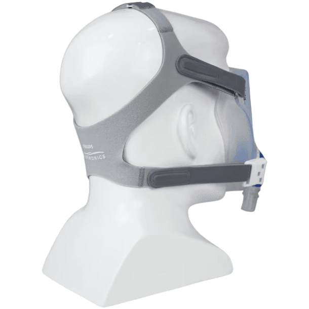 Graças a sua tecnologia de vedação, a máscara facial total FitLife SE (sem exalação) da Philips Respironics abrange toda a face do paciente proporcionando suavidade e menos pontos de pressão para uso com ventiladores que possuem alarmes e sistemas de segurança adequados para falha de ventilação.