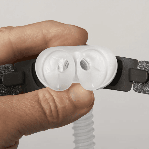 A máscara nasal Pillow 3100 Philips respironics pode ser utilizada em terapias com CPAP ou terapia com dois níveis.