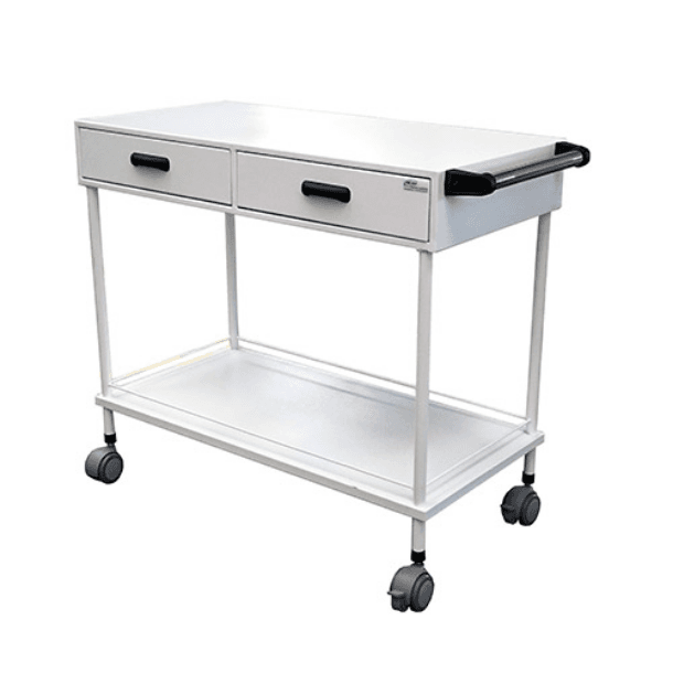 Duas gavetas com trilhos telescópicos e puxadores injetados.