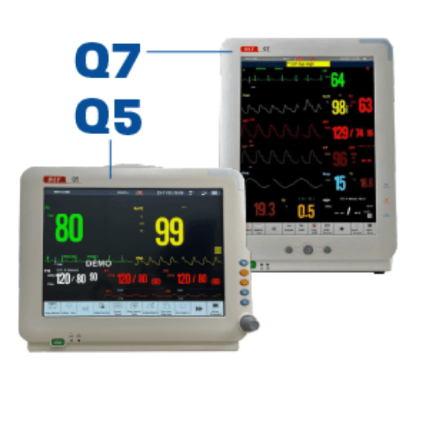 - Conectividade Total: Compatível com Wi-Fi e HL7, permitindo integração com a central de monitoramento e outros monitores da linha Q.