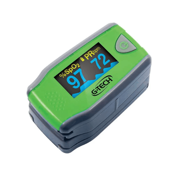 O Oxímetro Pediátrico OLED Graph G-Tech monitora com precisão a saturação de oxigênio no sangue (SpO2) e a frequência cardíaca de crianças. Seu design leve e intuitivo permite que tanto profissionais de saúde quanto cuidadores utilizem o dispositivo com segurança em casa ou em clínicas.