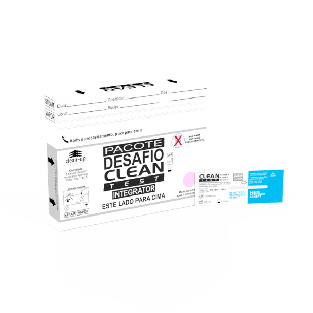 O Pacote Desafio Clean-Test – INTEGRATOR é um teste de uso único projetado para fornecer um desafio em autoclaves a 121 °C e 134 °C. Equivalente em desempenho a um indicador biológico aprovado pela AAMI, ele proporciona uma leitura clara e simples para liberação imediata de carga. Resultados satisfatórios indicam condições superiores às necessárias para matar esporos, enquanto resultados insatisfatórios apontam falhas no processo de esterilização. Em conformidade com a norma AAMI/ISO 11140-1:2014, Tipo 5, é ideal para garantir biossegurança e eficácia nos processos de esterilização.