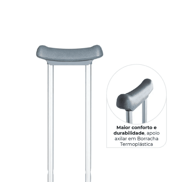 A Muleta Axilar de Alumínio Anodizado D7 Dellamed é uma escolha leve, resistente, anatômica e altamente ajustável para usuários que necessitam de apoio para locomoção. O par tem capacidade de suportar até 130 kg, esta muleta oferece conforto e segurança durante o uso. Seus 9 níveis de regulagem de altura inferior, alcançados através de engate rápido por pino click, e 5 níveis de regulagem de altura superior para o apoio da mão, facilitam o ajuste personalizado sem a necessidade de desmontar a muleta. O apoio axilar, com ranhuras e design anatômico, é extremamente macio, garantindo conforto excepcional para o usuário. Como uma muleta leve, anatômica e altamente ajustável, é uma escolha ideal para proporcionar suporte e mobilidade com comodidade