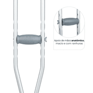 Apoio de mão anatômico e ajustável, sem necessidade de desmontar a muleta
