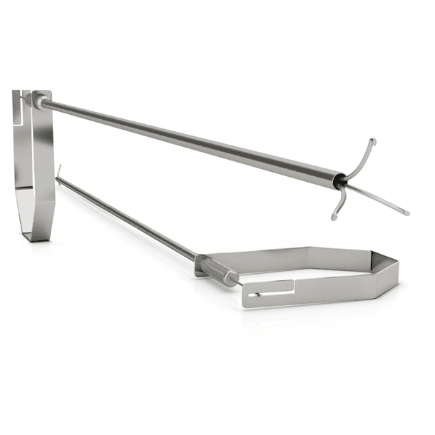 O sistema de pressão negativa permite ramas retráteis oferecendo estabilidade e fixação do cálculo para extração. As pontas de apreensão das ramas são construídas em ângulo fechado para não danificar a mucosa.