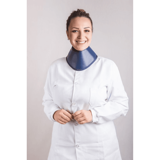 O Protetor para Tireoide de Borracha Plumbífera Adulto 0,50mm/Pb Azul Marinho protege com eficiência a glândula tireoide durante exames que envolvem radiação ionizante. Essencial em ambientes médicos e odontológicos, ele reduz a exposição à radiação dispersa e aumenta a segurança do paciente.